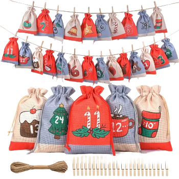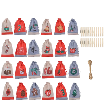• 24 ks jutových stahovacích sáčků s čísly (1-24)