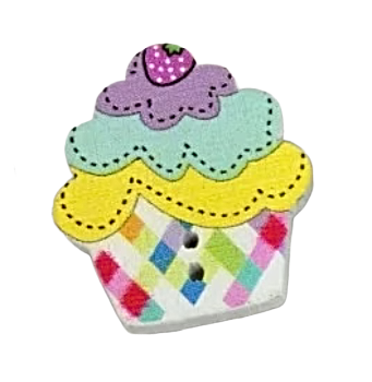 Roztomilý dřevěný knoflík ve tvaru cupcaku, který přinese sladký a