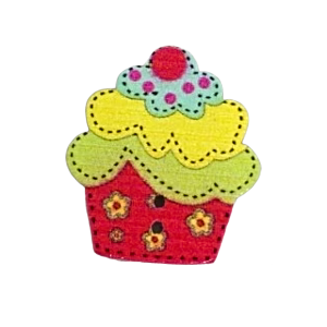 Roztomilý dřevěný knoflík ve tvaru cupcaku, který přinese sladký a