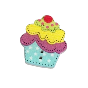 Roztomilý dřevěný knoflík ve tvaru cupcaku, který přinese sladký a