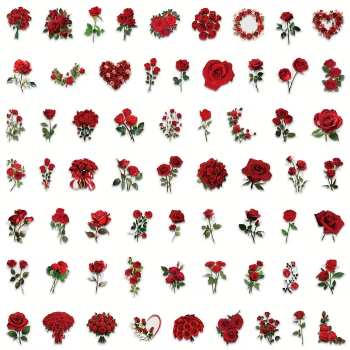 předměty. Tyto půvabné samolepky zachycují růže v různých designech - od