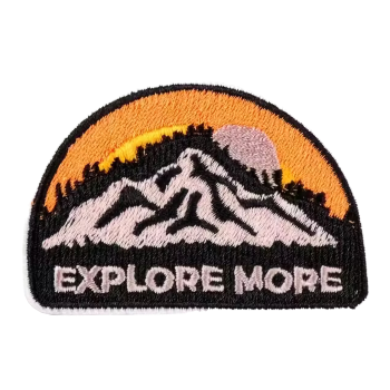 Inspirativní vyšívaná nášivka s nápisem EXPLORE MORE a motivem