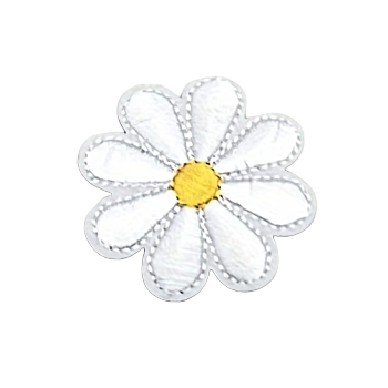 Jemná nažehlovací vyšívaná nášivka zobrazující bílou kytičku, která