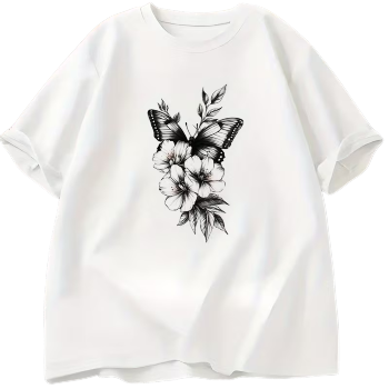 designů. Motýl s květy v černobílém provedení přináší nadčasovou