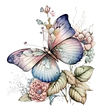 • Série obrázků s motivem duhového motýla a květiny
