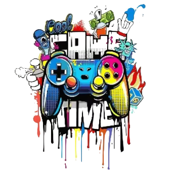 Dynamický barevný nažehlovací obrázek s nápisem GAME TIME, který