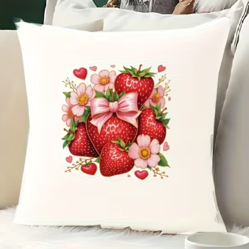 půvabný motiv kombinuje svěží červené jahody s romantickými srdíčky,
