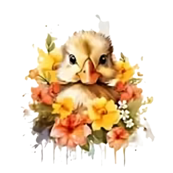 motivy zachycují kachničku obklopenou jarními květinami, což evokuje
