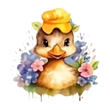 motivy zachycují kachničku obklopenou jarními květinami, což evokuje