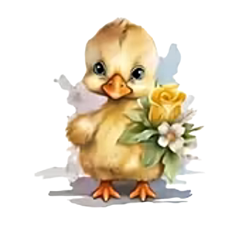 motivy zachycují kachničku obklopenou jarními květinami, což evokuje
