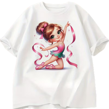 Půvabný nažehlovací obrázek zobrazující malou gymnastku se stuhou,