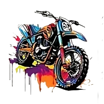 Stylová série nažehlovacích obrázků zobrazující motorky v různých