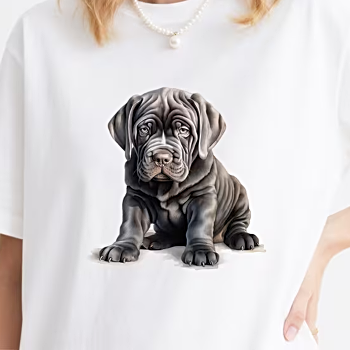 Roztomilý nažehlovací obrázek zobrazující štěně neapolského mastina,