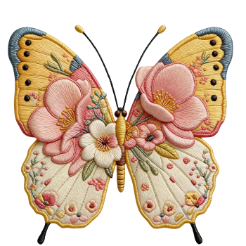 • Motiv: motýl s 3D patchwork efektem