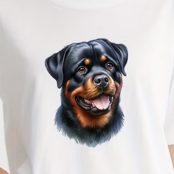 Impozantní nažehlovací obrázek zobrazující rottweilera, který přinese