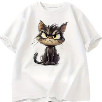 Výrazný nažehlovací obrázek zobrazující rozzlobenou kočku, který