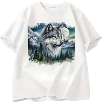• Působivý motiv vlčí hlavy s horami a měsícem