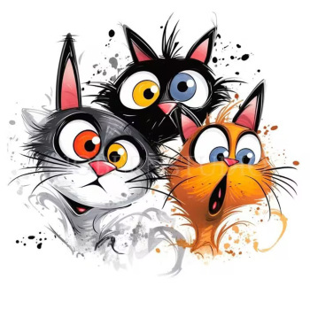 Zábavný kreslený nažehlovací obrázek zobrazující vykulené kočky,