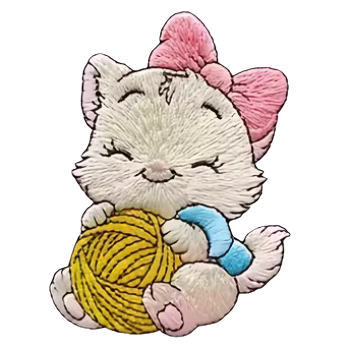 • Detailní vyšívání s precizním zpracováním kočičky s mašlí