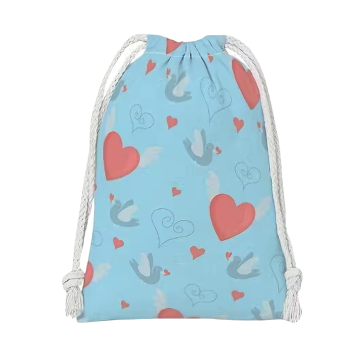 Elegantní stahovací sáček s modrým vzorem srdíček, který slouží jako