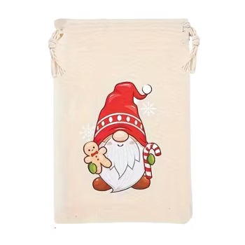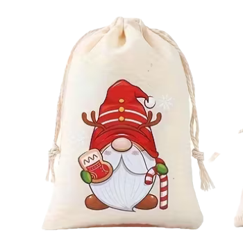 Roztomilé lněné stahovací sáčky s motivem vánočního skřítka, které