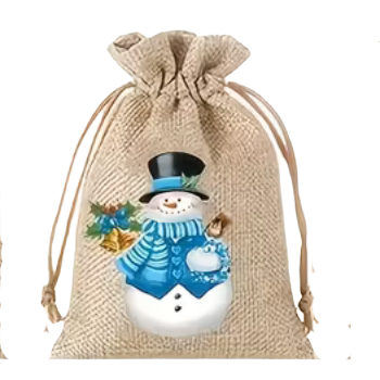 Roztomilé jutové stahovací sáčky s motivem sněhuláka, které přinesou rustikální a útulnou vánoční atmosféru do vašeho balení dárků. Tyto pytlíky jsou vyrobeny z přírodní juty (pytloviny) a zdobeny různými obrázky sněhuláka v několika designových variantách. Praktická stahovací šňůrka se nachází 12,5 cm od spodního okraje a nad ní zůstává ještě 1,5 cm ozdobného okraje, což vytváří pěkný estetický vzhled. Ekologický a přírodní materiál je ideální pro vánoční balení s rustikálním šarmem.
