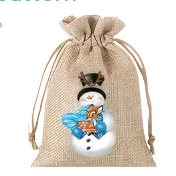 Roztomilé jutové stahovací sáčky s motivem sněhuláka, které přinesou rustikální a útulnou vánoční atmosféru do vašeho balení dárků. Tyto pytlíky jsou vyrobeny z přírodní juty (pytloviny) a zdobeny různými obrázky sněhuláka v několika designových variantách. Praktická stahovací šňůrka se nachází 12,5 cm od spodního okraje a nad ní zůstává ještě 1,5 cm ozdobného okraje, což vytváří pěkný estetický vzhled. Ekologický a přírodní materiál je ideální pro vánoční balení s rustikálním šarmem.